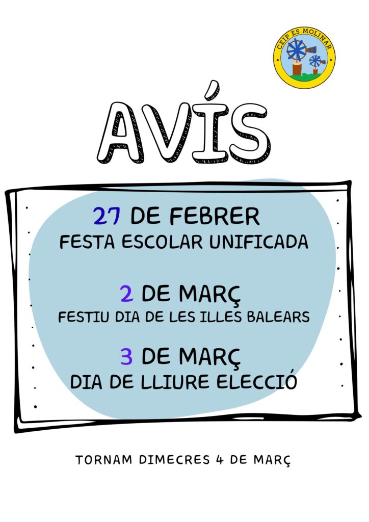 Novetats GeneralSant Antoni ...Leer más 8 de enero de 2026 / secretaria GeneralCalendari activitats nadal ...Leer más 12 de diciembre de 2025 / secretaria GeneralFormació per a famílies ...Leer más 12 de diciembre de 2025 / secretaria Llistat definitiu del procés ordinari admissión (plazas curso 2025-26) Listado La nostra escola 2025-2026 Llistat ajudes a menjador 2024-2025 Llistes d'admesos Ayudas individualizadas de comedor escolar (CURSO 2024-2025) PRESENTACIÓN DEL 25 al 28 DE JUNIO Sol·licitud d'ajuts de menjador per barem (2024-2025) Acceptació de l’ajut (2024-2025) Solicitud de ayudas de comedor por baremo(2024-2025) Aceptación de la ayuda (2024-2025) DNI/NIE/PASSAPORT mare/i/o tutor de l’alumne/a.DNI/NIE/PASSAPORT pare/i/o tutor de l’alumne/a.DNI/ NIE/PASSAPORT de l’alumne/a.Targeta sanitària.Vacunes de l’alumne/a.2 Fotos de carnet de l’alumne/a. Claustre Powered By EmbedPress Equip directiu Equip de suport Infantil 1r cicle 2n cicle 3r cicle Us proposem un programa complet d’activitats que us ofereixen l’oportunitat de desenvolupar diferents habilitats que complementaran la seva educació. més informació Descobriu les nostres activitats Us proposem un programa complet d’activitats que us ofereixen l’oportunitat de desenvolupar diferents habilitats que complementaran la seva educació. més informació Secretaria Informació de serveis , consultes i tràmits per a famílies i alumnes. Menjador escolar Informació de serveis , consultes i tramits per a famílies i alumnes. Escola matinera Servei d’atenció a l’alumnat abans de l’inici de les classes Horaris i calendari Informació sobre els horaris de cada etapa i el calendari escolar.